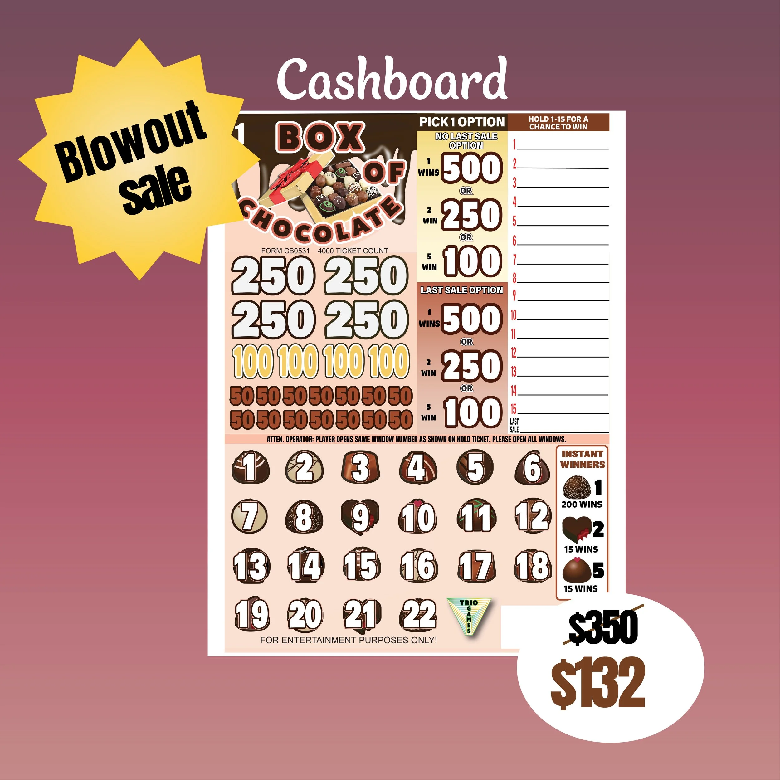 Categories: All Bingo Pads Pull-Tab Games Cashboards Elimination Games Holder Games Instant Games All / All Bingo Pads Pull-Tab Games Cashboards Elimination Games Holder Games Instant Games Dragon Fire Sale Price: $150.00 Original Price: $365.00 Sale Add To Cart Added! Wild West Round Up Sale Price: $105.00 Original Price: $285.00 Sale Add To Cart Added! Box of Chocolate Sale Price: $132.00 Original Price: $132.00 Sale Add To Cart Added!